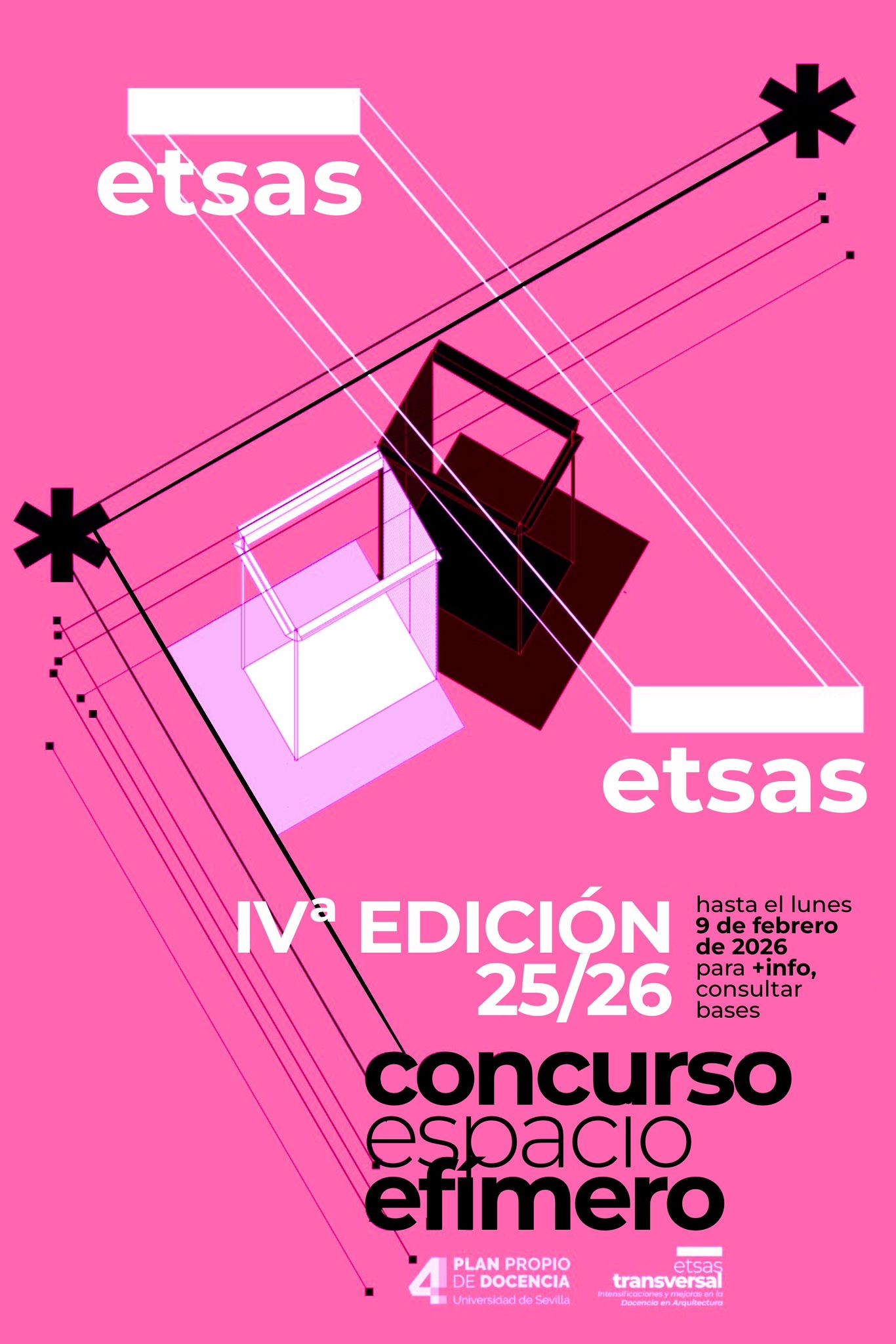 El Equipo de Dirección de la Escuela Técnica Superior de Arquitectura convoca este curso 25-26 la IVª Edición del Concurso para Estudiantes, ESPACIO EFÍMERO, con la intención de implicar a los estudiantes en el diseño y la construcción del próximo stand de la ETSAS de manera que su propuesta espacial y formal transmita los valores, capacidades y destrezas de nuestros estudiantes para, a través del proyecto arquitectónico, transformar la realidad.